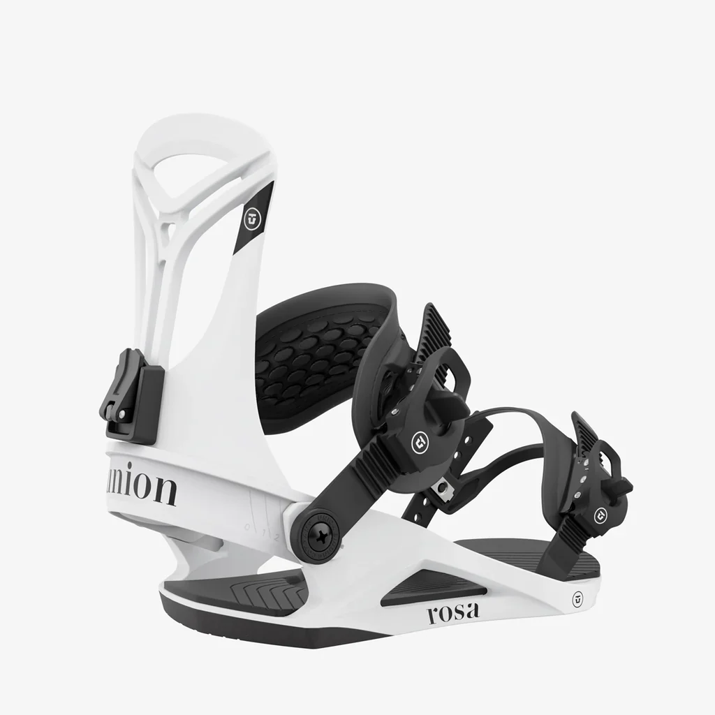 Lightest women’s snowboard binding on the market. The Rosa is the perfect introduction to Union’s freestyle binding category. Entry-level price tag doesn't mean entry-level performance at Union. Just last year the Union Rosa was fully redesigned from the ground up. An all-new Stage 8 Duraflex baseplate combined with the Falcor inspired highback deliver the lightest weight and highest value female specific binding the snowboard world has ever seen.